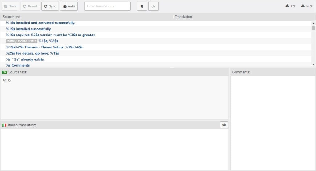 Sync Button: Adds newly added strings to your translation after updating the theme.