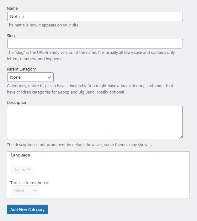Step 4 – The new taxonomy creation page will open. Fill in the fields. So there will be a term for each language.