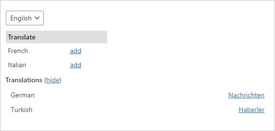 The core plugin turns WordPress multilingual. It adds the basic translation controls and allows translating content.