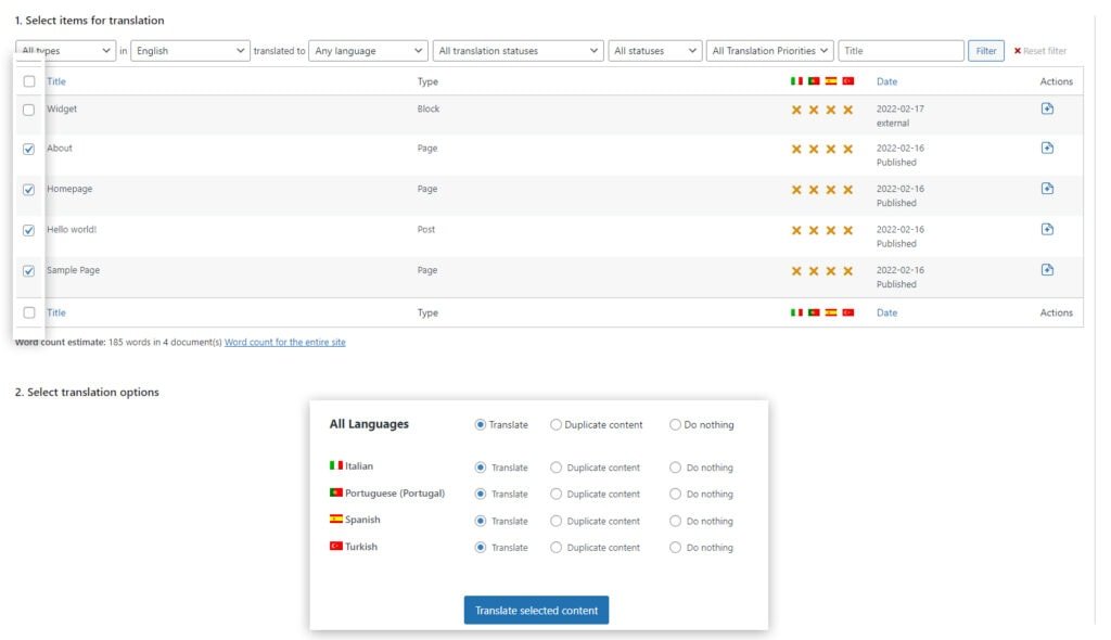 Step 4 – Choose which languages to translate into (or duplicate content).