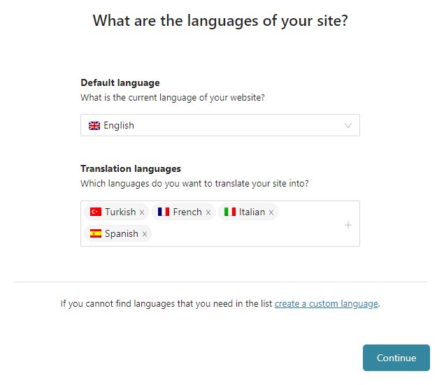 Step 12 – In this step (Translation), choose how you want to translate this site and click on the ‘Continue’ button.
